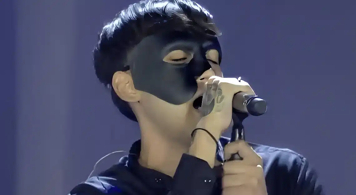 Ο 18χρονος, η ταυτότητα του οποίου παραμένει επτασφράγιστο μυστικό, εμφανίστηκε στη σκηνή με τη χαρακτηριστική του μάσκα και ερμήνευσε συγκλονιστικά το «Όταν βλέπετε να κλαίω», κερδίζοντας το θερμό χειροκρότημα του κοινού.